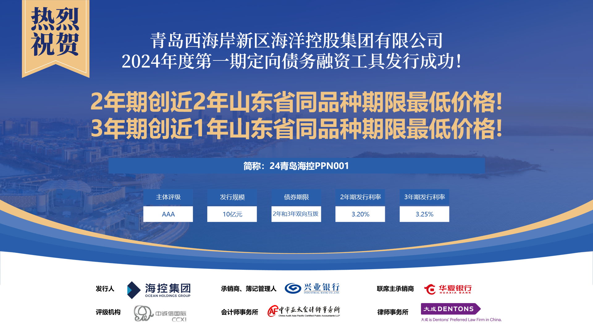 集團2024年債券發行“開門紅”體現了資本市場對??丶瘓F的高度認可。??丶瘓F將繼續深化產業化轉型成果,拓展多元融資渠道,為西海岸新區高質量發展做出更大貢獻。